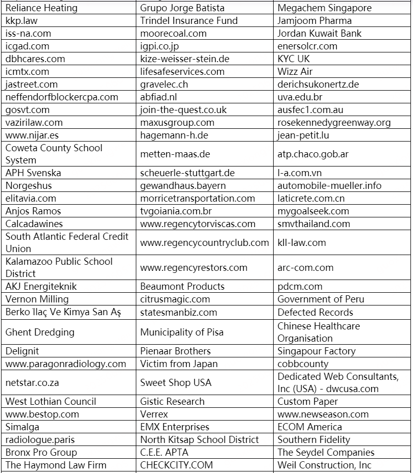 以下是本月被双重勒索软件家族攻击的企业或个人。若未发现数据存在泄漏风险的企业或个人也请第一时间自查,做好数据已被泄露准备,采取补救措施。