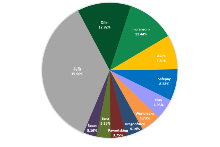 图1. 2025年7月勒索软件家族占比