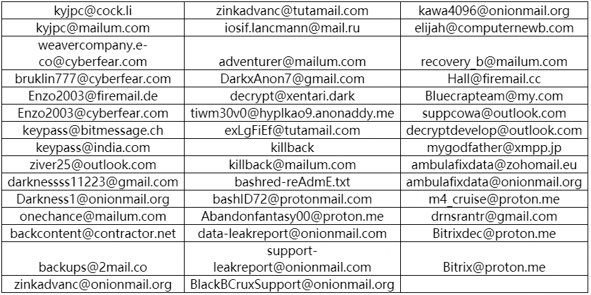 表2. 黑客邮箱