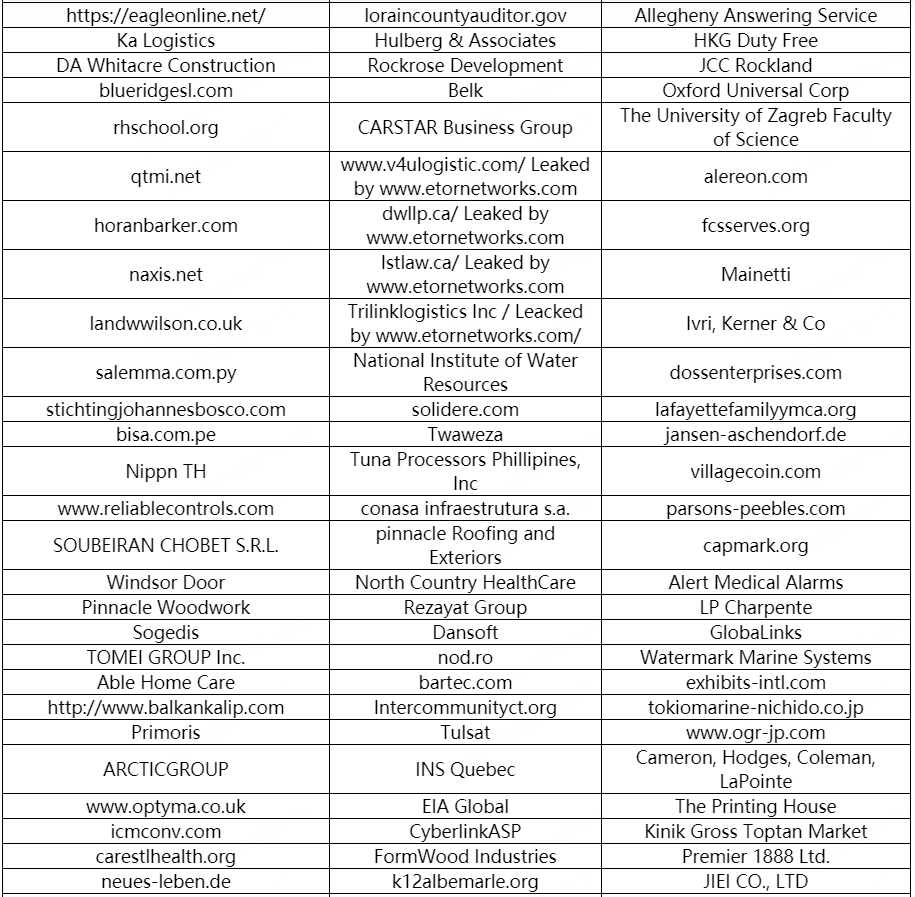 以下是本月被双重勒索软件家族攻击的企业或个人。若未发现数据存在泄漏风险的企业或个人也请第一时间自查,做好数据已泄露的准备,采取补救措施。